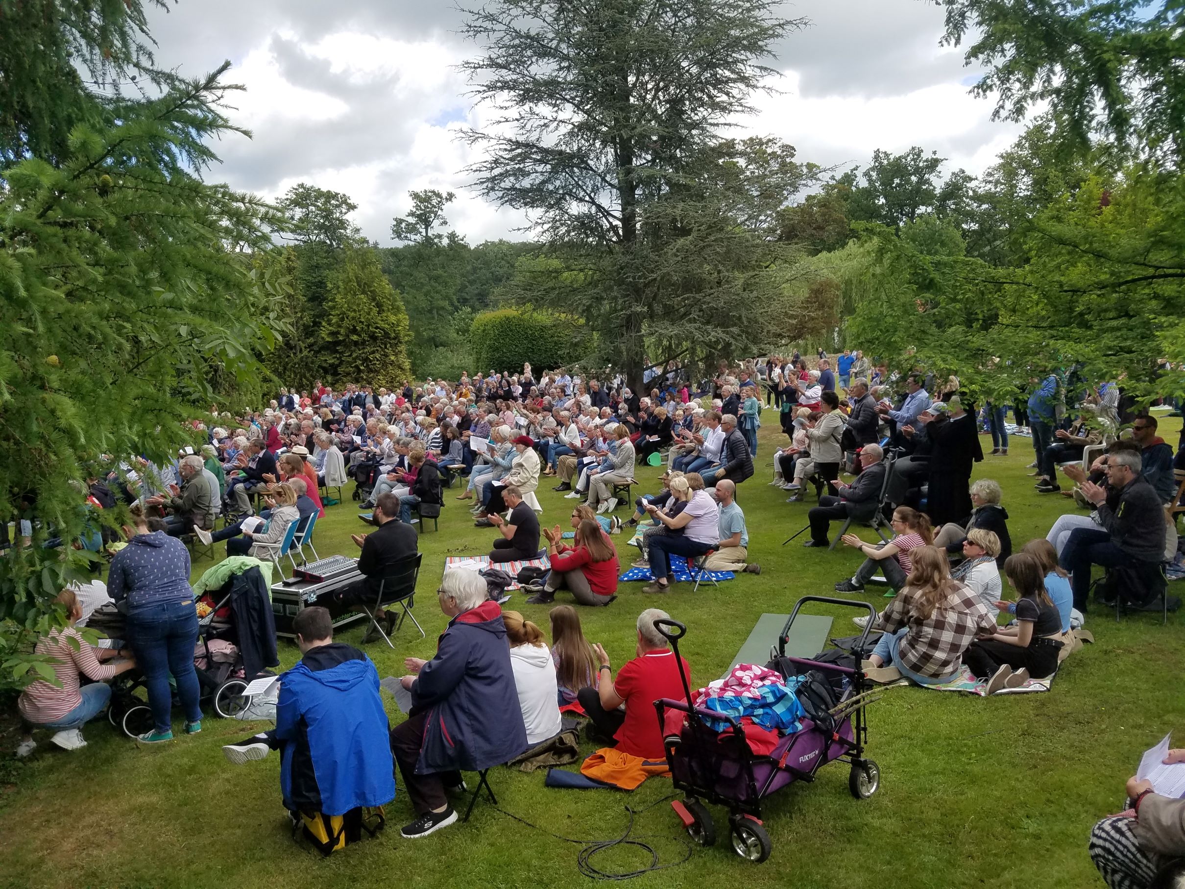 Es werden einige Bänke aufgebaut sein. Bringen Sie aber auch gerne eigene Decken oder Stühle oder andere Sitzmöglichkeiten mit. Nach dem Gottesdienst sind alle eingeladen zu einem kühlen Getränk und zu Würstchen oder einer leckeren vegetarischen Variante.
