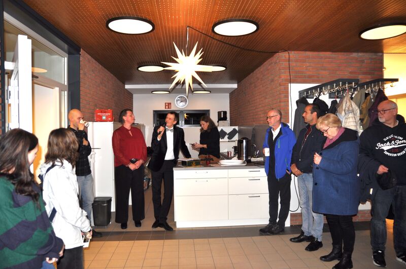 3. Durch die Verlegung des Eingangs ins Gemeindehaus, konnten auf Seiten des ehemaligen Eingangs weitere Quadratmeter gewonnen werden, die genutzt wurden, um die neue, zum Foyer hin offene, kinder- und behindertengerechte Küche mit zwei Küchenzeilen (eine niedrige und eine hohe) einzurichten.