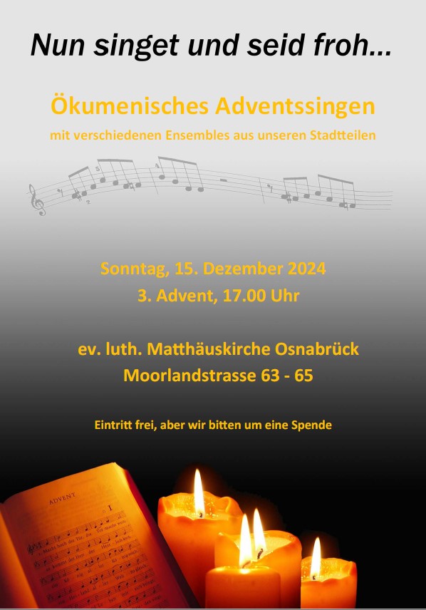 Ökumenisches Adventssingen 2024 Herzliche Einladung zum ökumenischen Adventssingen mit verschiedenen Ensembles aus unseren Stadtteilen.