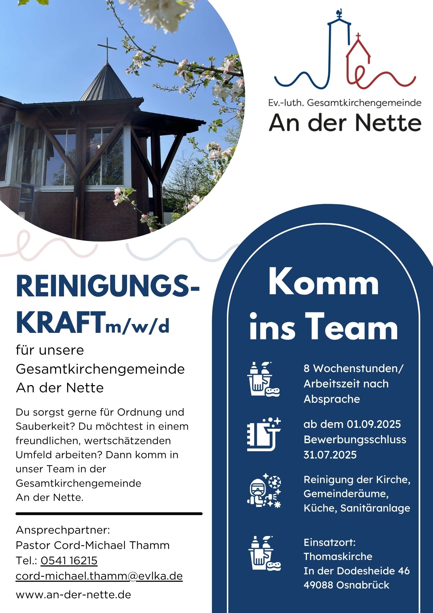 Wir suchen Dich: Reinigungskraft (m/w/d) für die Thomaskirche in unserer Gesamtkirchengemeinde An der Nette